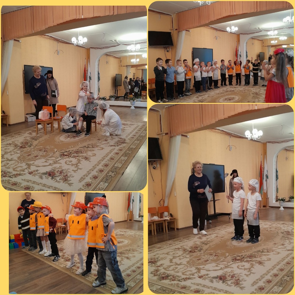 В нашем детском саду прошли музыкальные развлечения «Веселье и труд рядом идут»,«Все работы хороши». В них приняли участие воспитанники старших групп. Они представляли профессии пожарных, пилотов, водителей, столяров, поваров и музыкантов.