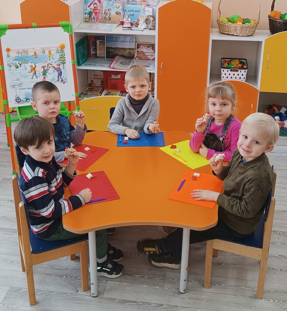 Снеговик — любимец детей, симпатичный и жизнерадостный символ настоящей зимы. Сложно представить зиму без снеговика во дворе — веселого человечка с носом из морковки, озорными глазками из угольков и с ведерком вместо шапки. Дети всегда охотно и с удовольствием берутся за создание снеговика. Воспитанники второй младшей группы «В» решили слепить веселых и забавных снеговиков не из снега, а из пластилина.