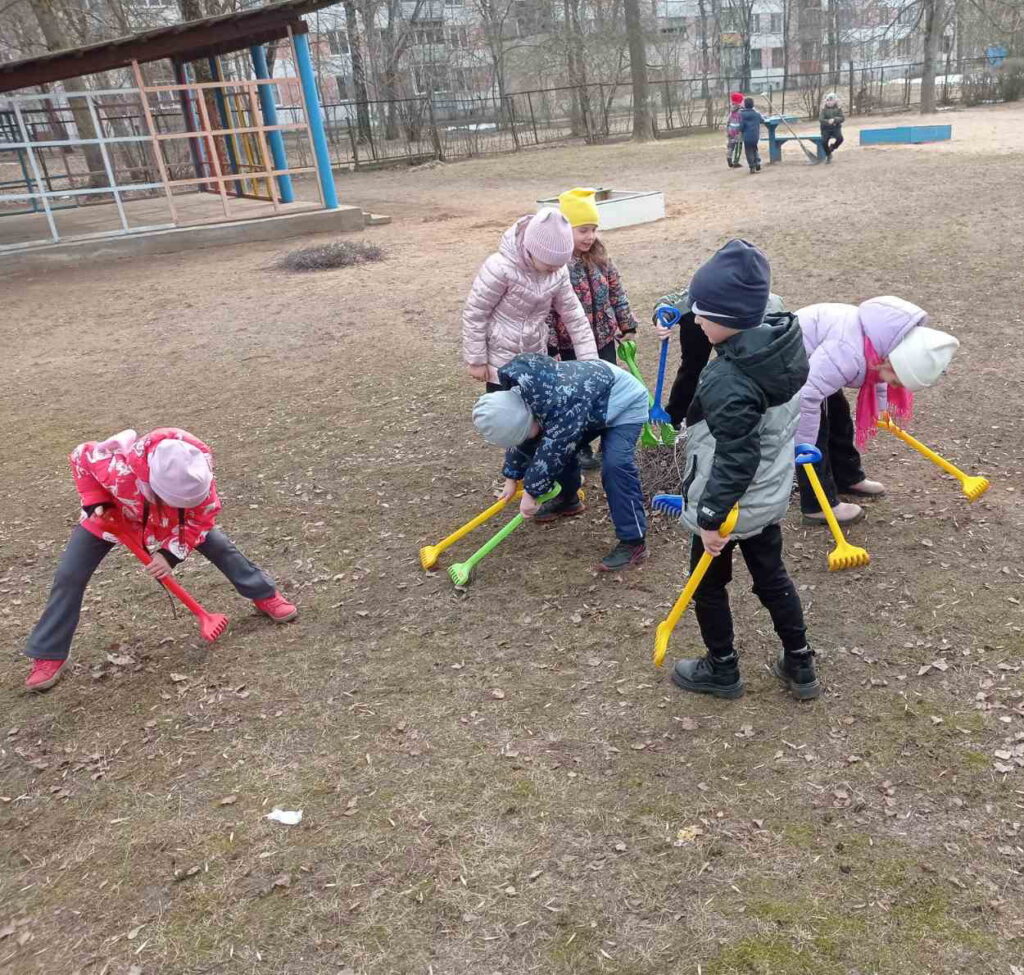 Трудовое воспитание на свежем воздухе не только формирует у детей трудовые навыки и развивает трудолюбие, но и налаживает дружественные взаимоотношения между детьми в процессе трудовой деятельности. Важно формировать у детей дошкольного возраста понимание, что труд в природе – это не игра и не развлечение, а серьезное занятие. Следует подводить их к пониманию необходимости такой деятельности, воспитывать желание участвовать в труде. Во время таких прогулок дети учатся работать в коллективе.